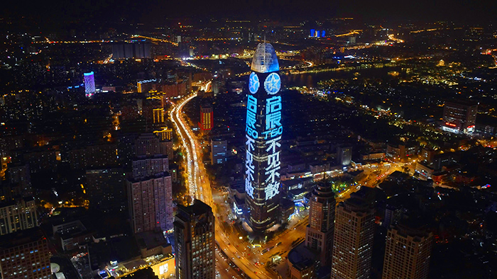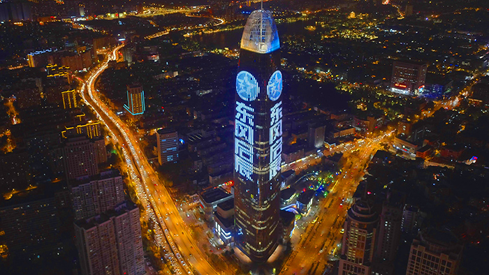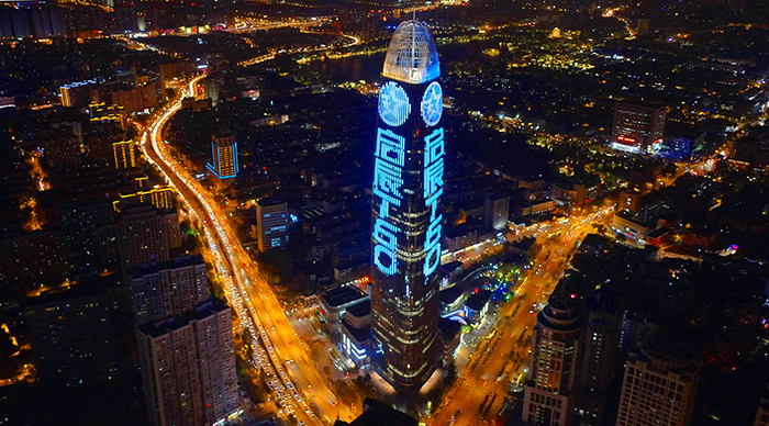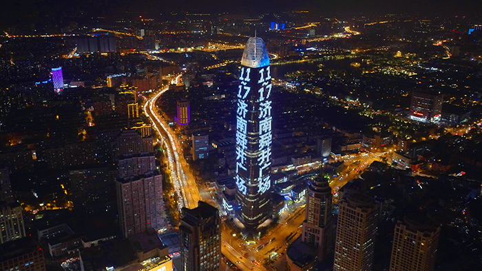 地標的戶外媒介,不僅為城市提供了全新的標記和注解,其在廣告傳播方面的價值也是顯而易見。本案由華途傳媒設計發布執行。不僅有恢宏大氣的品牌露出,而且傳播效應堪稱轟動全國!獨特或者高聳的建筑成為地標戶外無庸贅述,進入信息時代,濟南城市地標媒體燈光秀廣告助力品牌新高度。