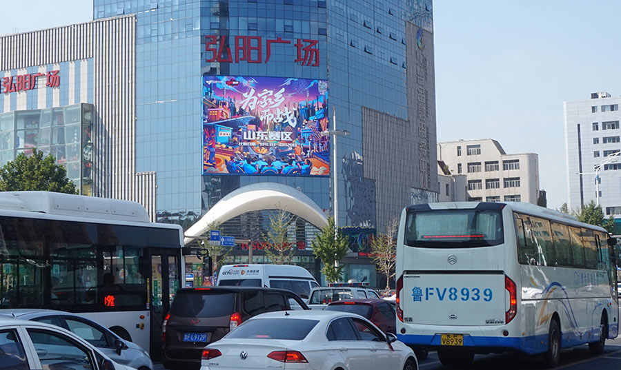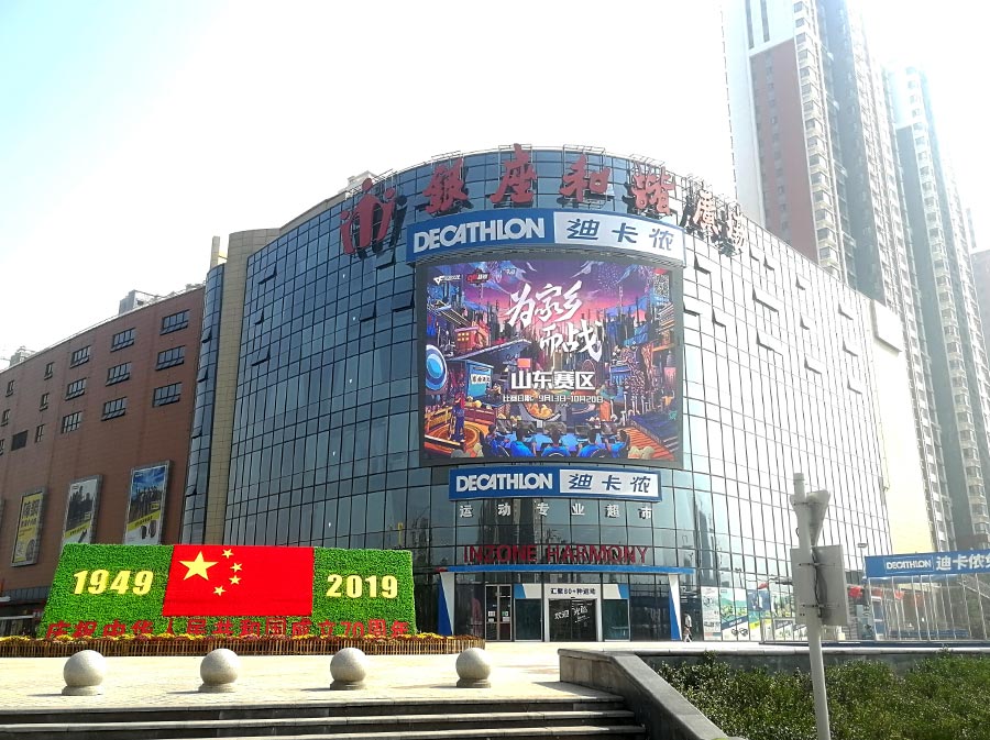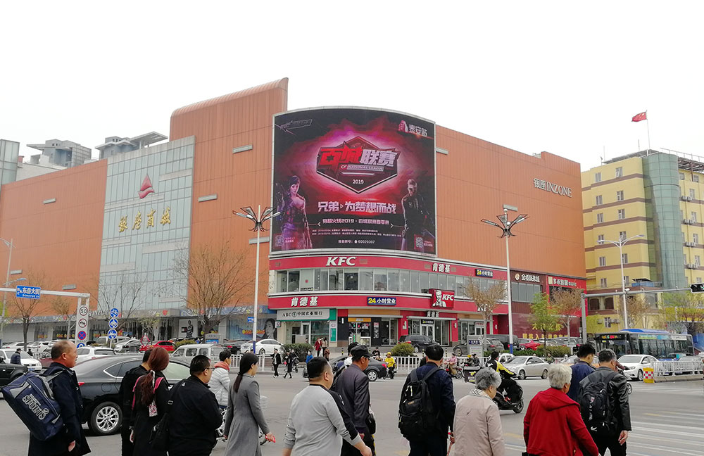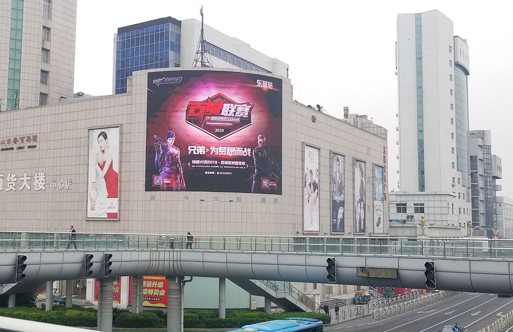 (穿越火線投放“網紅屏”濟南泉城路世茂廣場戶外LED屏廣告)