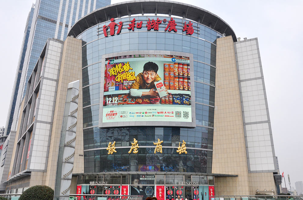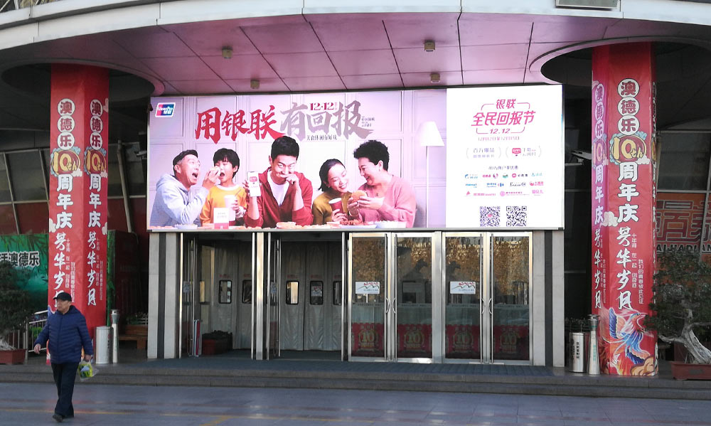 (中國銀聯(lián)投放“經(jīng)十屏”銀座和諧廣場戶外LED屏廣告)