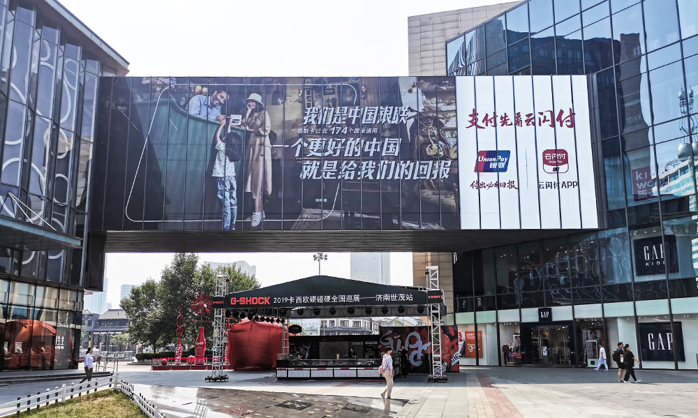 (中國銀聯(lián)投放“泉眼”齊魯國際大廈戶外LED屏廣告)