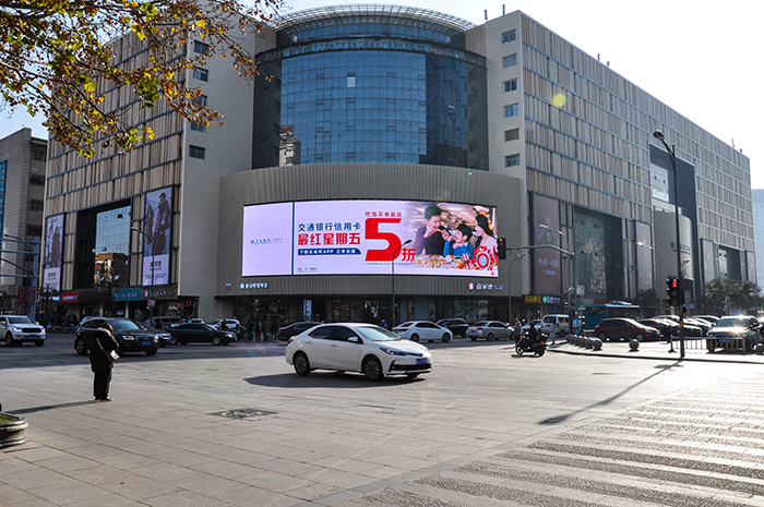(交通銀行信用卡投放“網紅屏”濟南泉城路世茂廣場戶外LED屏廣告)