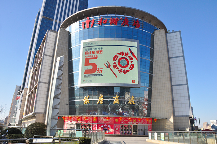 (交通銀行信用卡投放“經十屏”銀座和諧廣場戶外LED屏廣告)