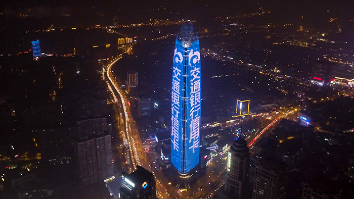 (交通銀行信用卡投放濟南地標媒體-濟南綠地中心第一高媒廣告)