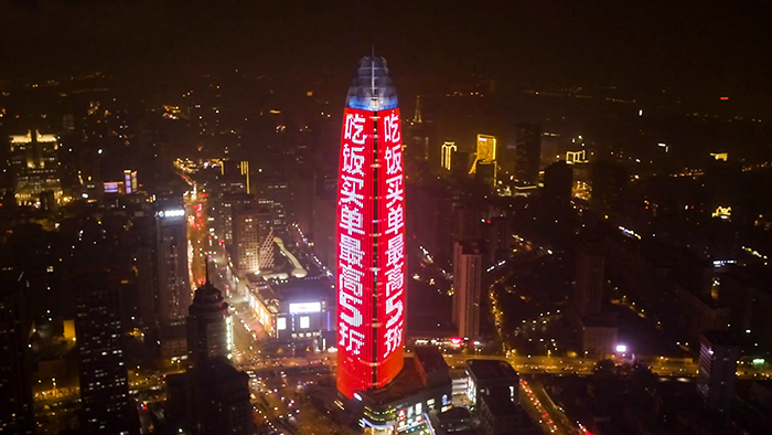 地標的戶外媒介,不僅為城市提供了全新的標記和注解,其在廣告傳播方面的價值也是顯而易見。本案由華途傳媒設計發布執行。不僅有恢宏大氣的品牌露出,而且傳播效應堪稱轟動全國!獨特或者高聳的建筑成為地標戶外無庸贅述,進入信息時代,濟南城市地標媒體燈光秀廣告助力品牌新高度。