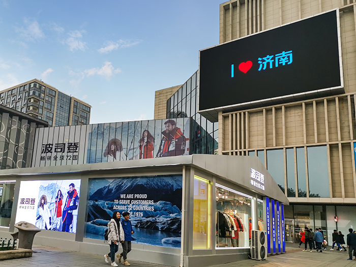 波司登聯手山東華途傳媒通過濟南“網紅橋”世茂廣場(寬厚里)連廊橋橋體廣告,精準覆蓋消費人群。該位置是濟南市區內唯一一座橋體戶外廣告,是濟南最火的商業街區廣告。絕對覆蓋濟南市地標性商業步行街“泉城路商業街”,朝向泉城路,西鄰舜井商廈、貴和購物中心、恒隆廣場,東臨解放閣,北臨山東省政協、泉樂坊商業街區等。