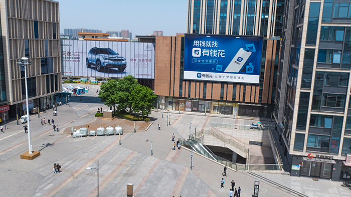 百度信貸聯手山東華途傳媒通過濟南“流量之窗”世茂廣場(寬厚里)戶外墻體燈箱廣告,精準覆蓋消費人群。