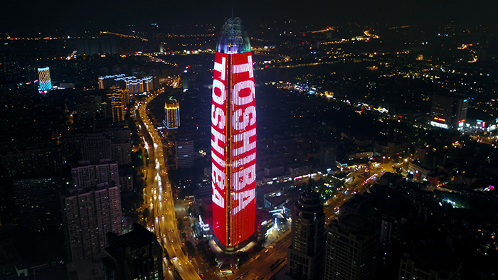(東芝投放濟南地標媒體-濟南綠地中心第一高媒廣告)