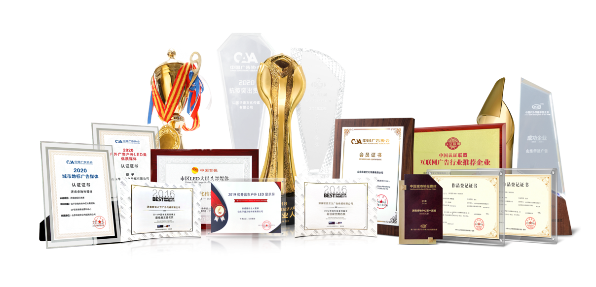 中國一級廣告企業 · 中國百強戶外廣告企業 · 中國廣告協會戶外委常委單位 · 中國城市地標(燈光秀)媒體運營平臺輪值副主席單位