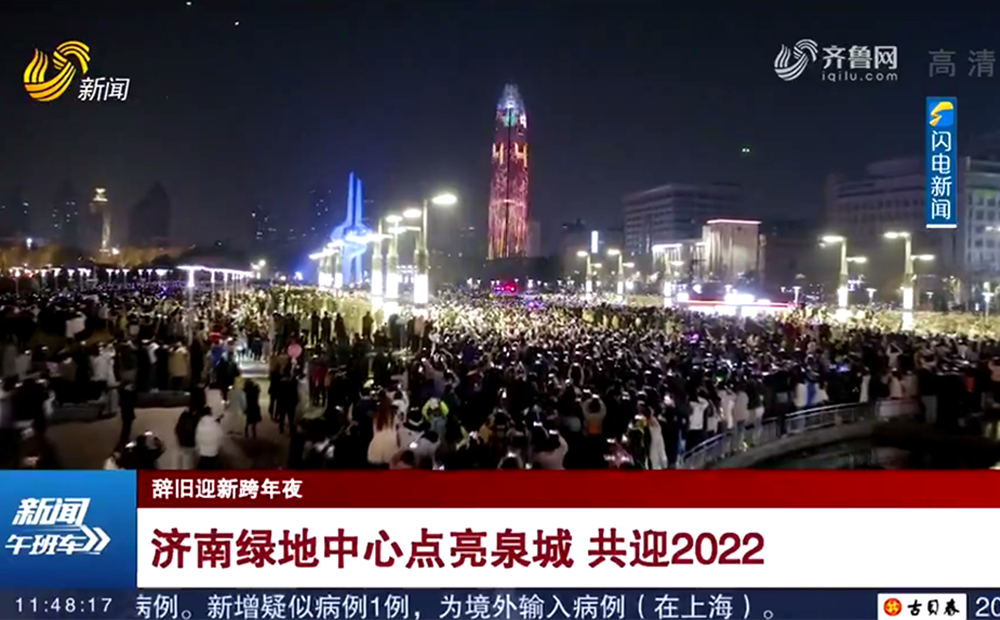 1月1日零時,眾多濟南市民站在泉城廣場,與泉城濟南地標建筑綠地中心一起進行新年10秒倒計時,用光影盛宴迎接嶄新的一年。辭舊年,迎新歲,在活力滿滿、儀式感中,告別2021,迎接2022,盡享節日氛圍。