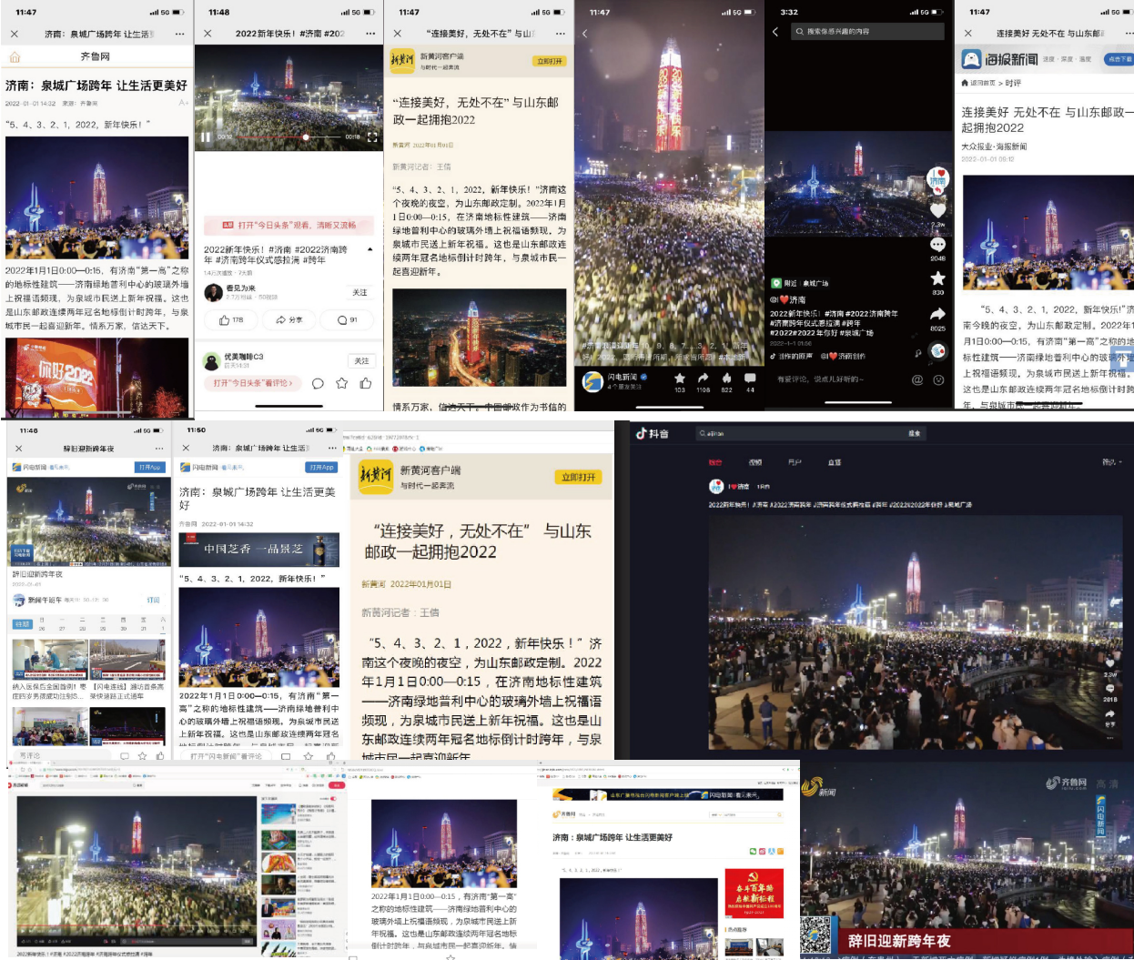隨著新年鐘聲的敲響,數萬市民在泉城廣場齊聲告別2021!10、9、8、7……3、2、1,2022新年快樂!