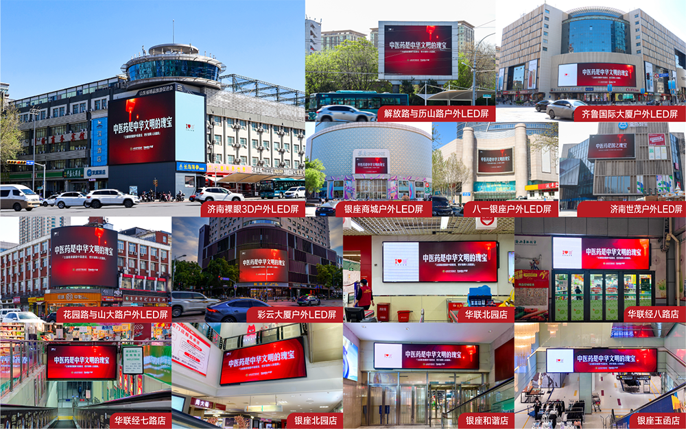 中醫藥是中華文明的瑰寶,是五千多年文明的結晶,在全民健康中發揮著重要作用。如何把中醫藥這一祖先留給我們的寶貴財富繼承好、發展好、利用好,成為不容回避的時代考題。山東作為中醫藥大省,中醫藥文化源遠流長,為大力弘揚中華民族優秀傳統文化,加強中醫藥文化宣傳。近日,華途傳媒聯合山東省中藥協會共同發起中醫藥文化公益推廣行動,該活動通過在濟南市區戶外LED屏和商超百貨聯播屏發布“中醫藥是中華文明的瑰寶”內容,為全面推進健康中國建設、更好保障人民健康持續助力。